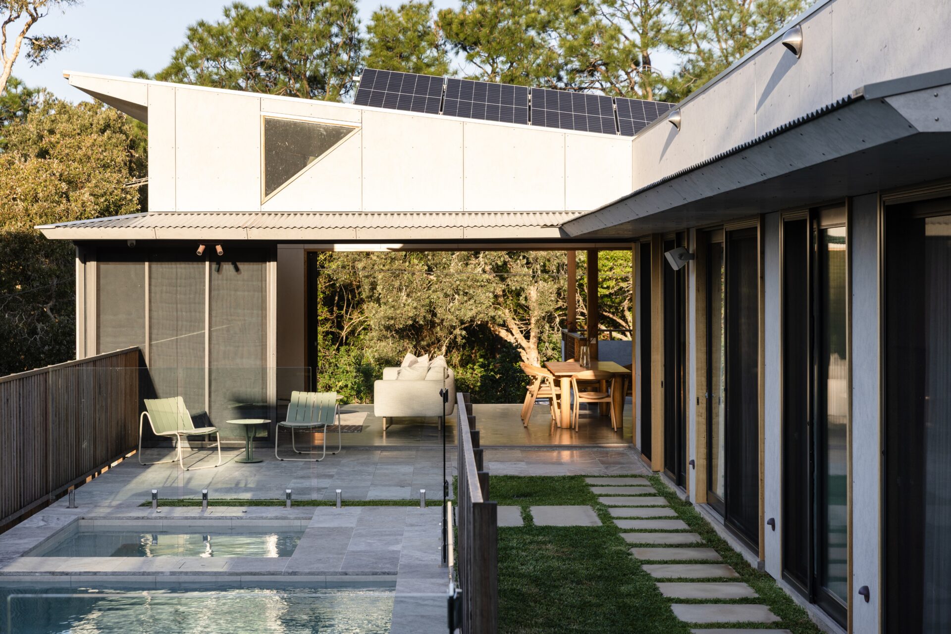 We found our amazing location, and once we met Sacha and Jaya, we knew their passion, creativity, and innovation would shape our forever place. Our vision was a home where three generations and friends could happily live together. Giving them creative freedom was important, and we were thrilled when they presented a design that was stunning, environmentally conscious, functional, and deeply thoughtful. Now we cherish early coffees on the front deck, reading to grandkids on the living room bench, afternoon swims, and ocean-breeze family dinners. Our home is a warm, inviting haven for an ever-growing family to enjoy.